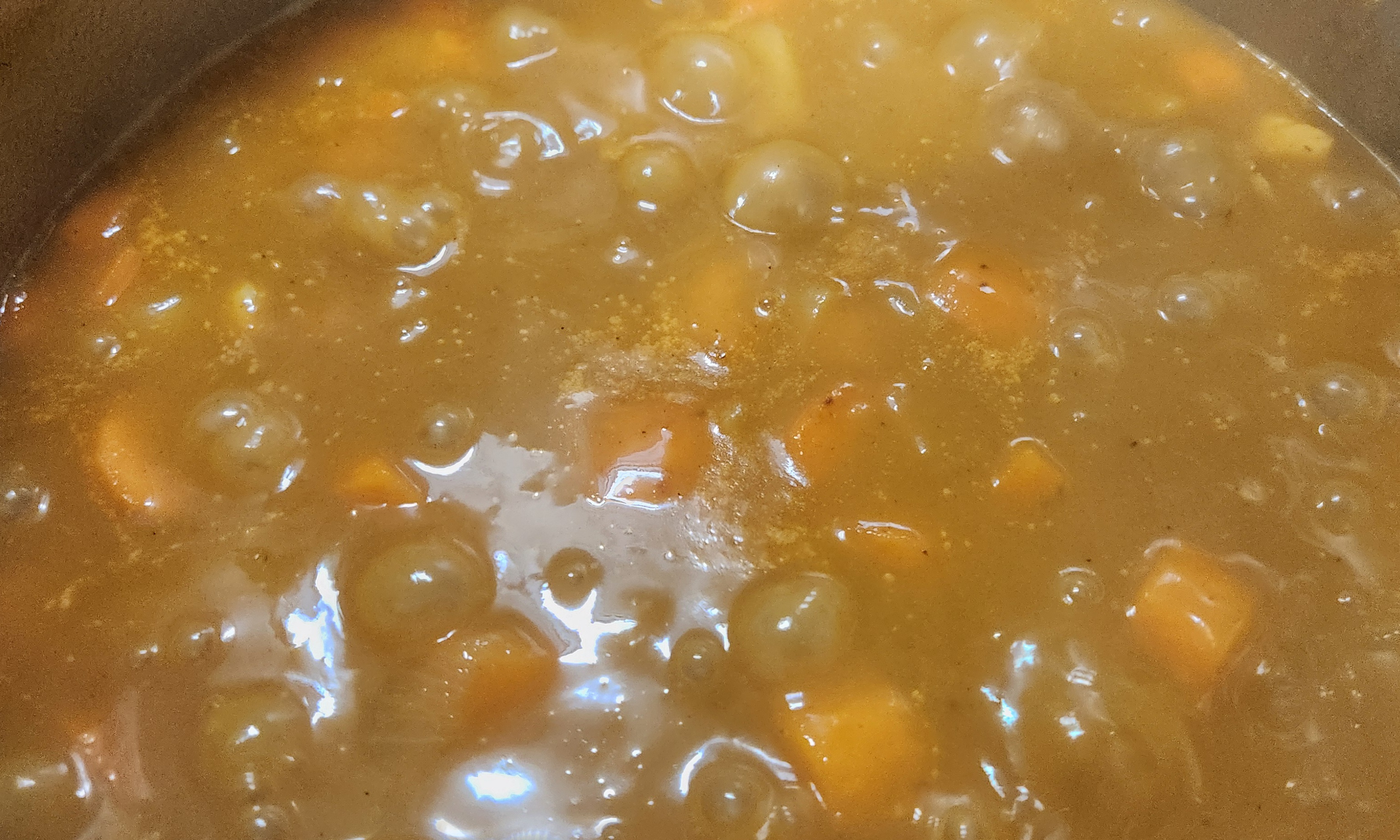 카레가 걸쭉해질 때까지 5~10분 더 끓여줍니다. 간을 보고 필요하면 물이나 카레를 추가해 조절합니다.