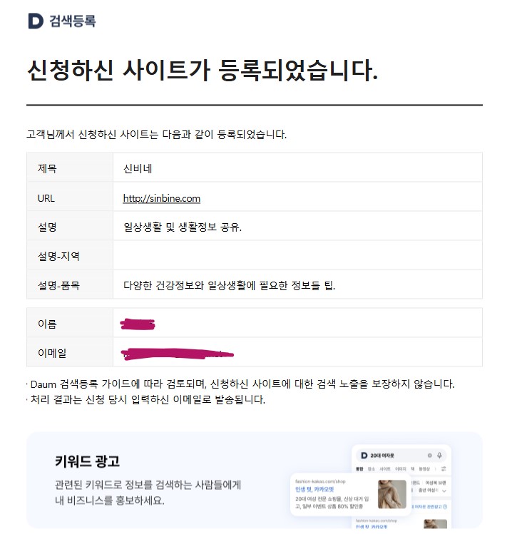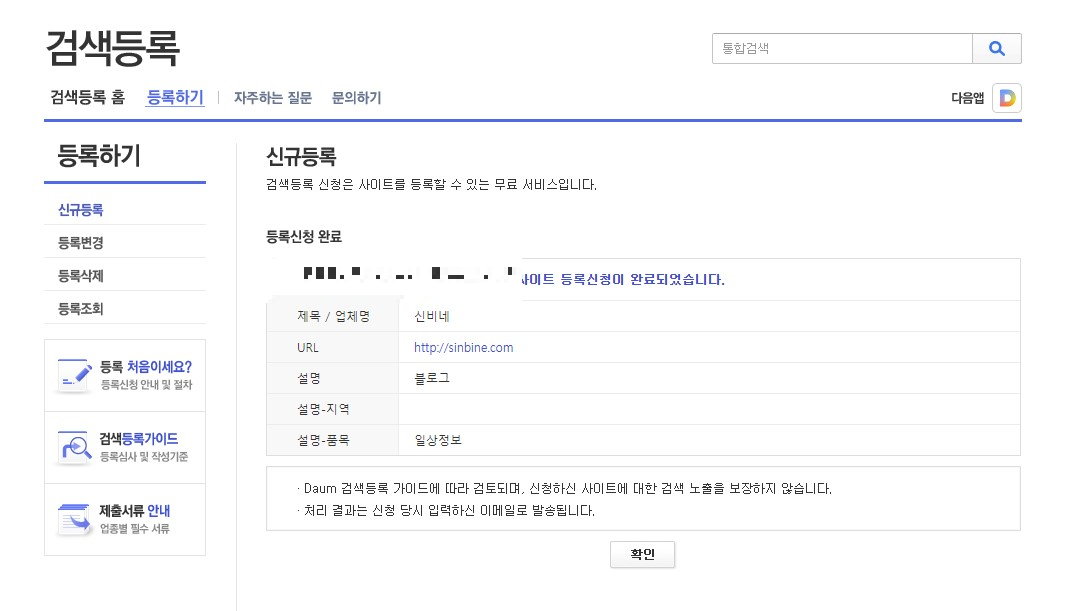 다음 검색 등록을 해보기로 합니다.