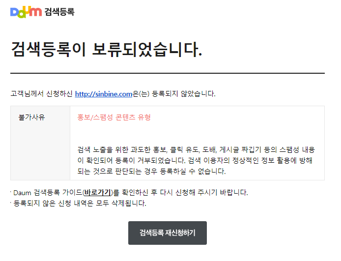 티스토리를 시작한지 40일정도 되었습니다. 처음엔 다음에서 사이트가 검색이 되었었는데 도메인을 변경하면서 사이트가 뜨지 않고 있습니다. 블로그 글 1개만 뜨고 있어서 사이트 등록을 다시 해보려고 합니다. 최적화가 되어 있지 않으면 다음에서 노출이 되지 않기 때문에 하나씩 해결해 보려고 합니다.
