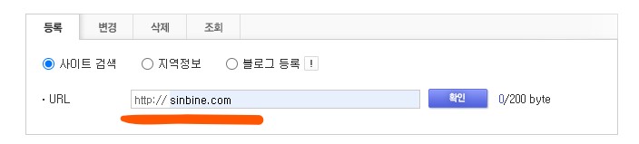 아래처럼 sinbine.com 입력후 확인을 눌러주세요