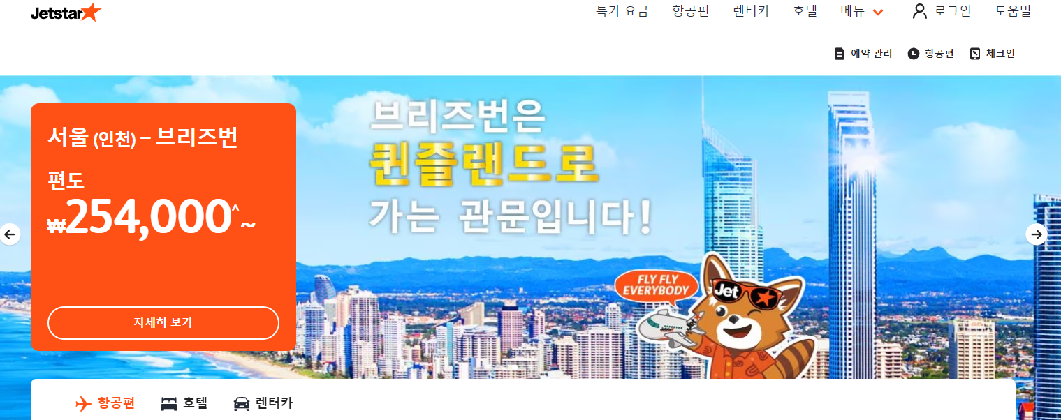 저렴한 항공편 | 비행기 최저 요금 보장 | 젯스타