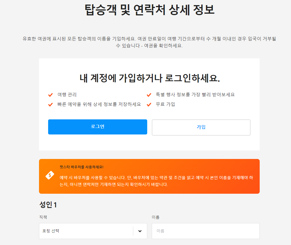 이제 젯스타에 가입하신 계정으로 로그인하시고 개인 정보 입력후 결재하시면 됩니다.