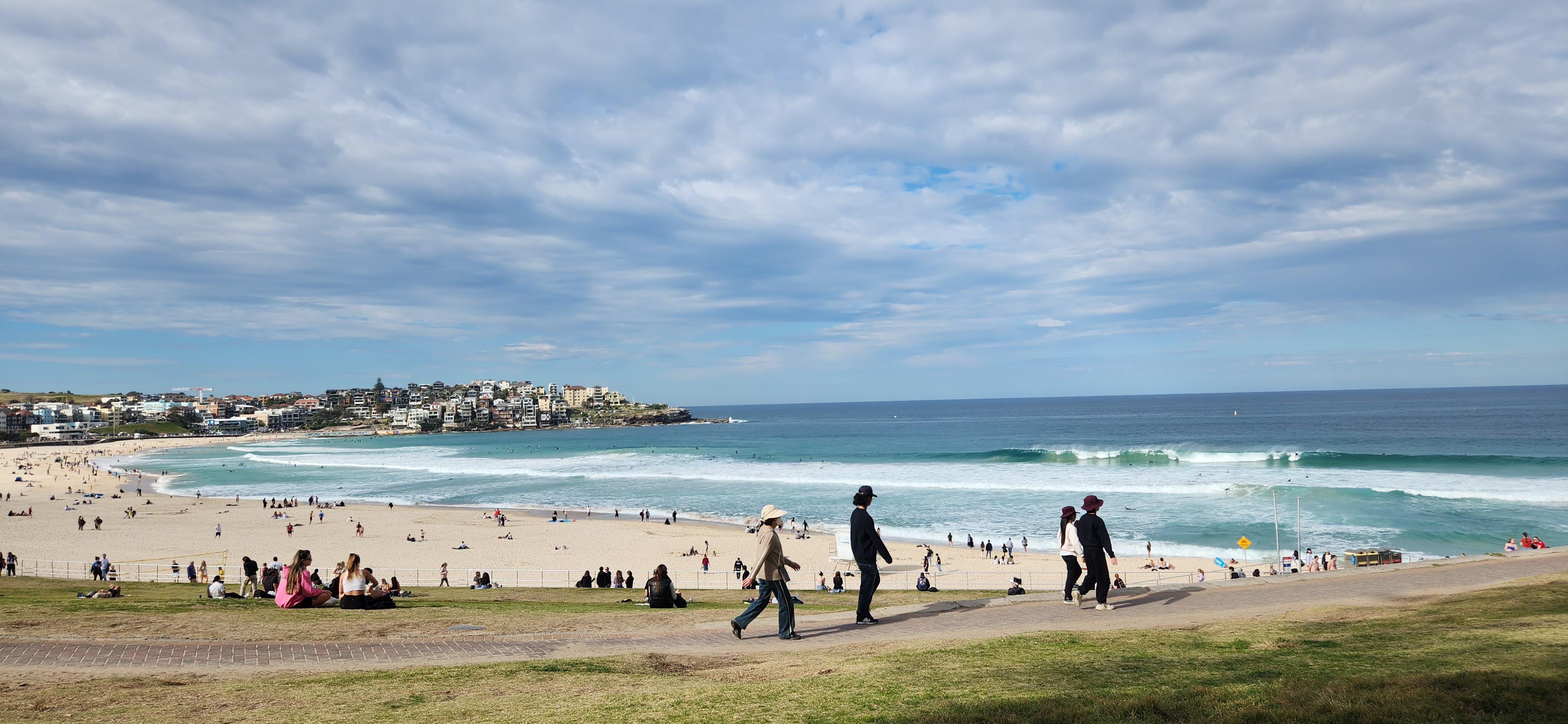 우리는 본다이 비치가 잘 보이는 잔디밭에 자리 잡고 느긋한 하루를 즐기고 있는 중입니다.